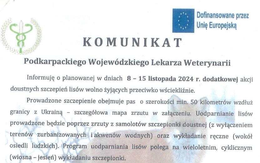KOMUNIKAT Podkarpackiego Wojewódzkiego Lekarza Weterynarii