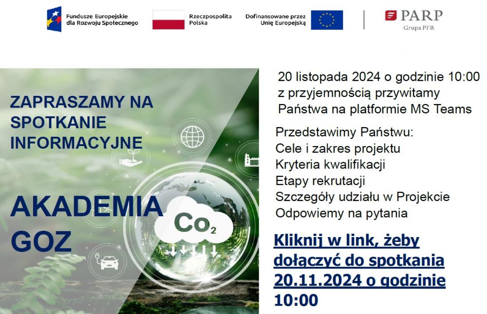 W załączniku przesyłamy zaproszenie na spotkanie on-line dotyczące projektu z aktywnym hiperłączem oraz kilka słów o GOZ i projekcie.