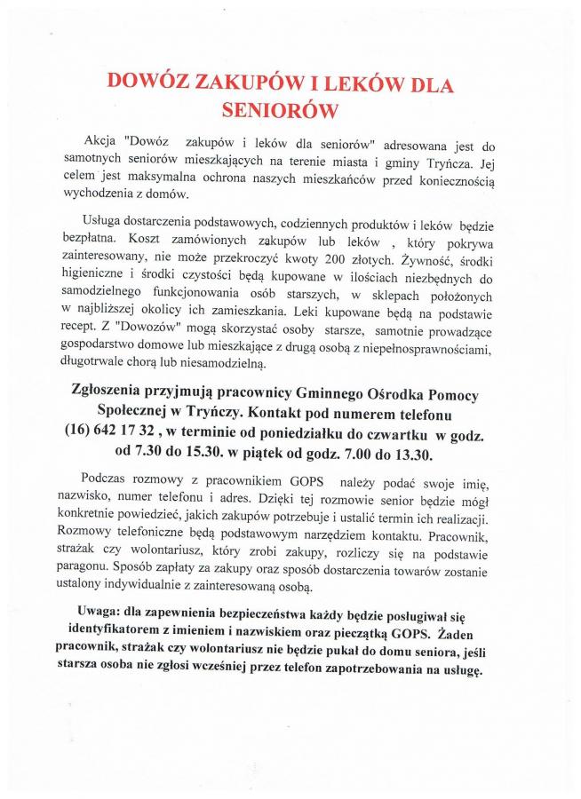 DOWÓZ ZAKUPÓW I LEKÓW DLA SENIORÓW