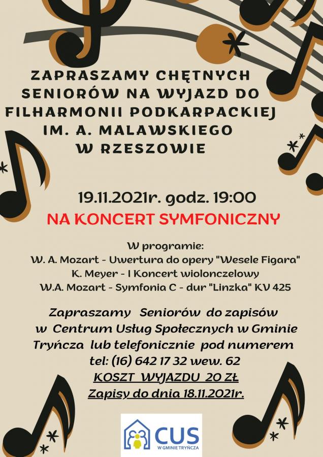 Zapraszamy chętnych seniorów na wyjazd do Filharmonii Podkarpackiej im. A. Malawskiego w Rzeszowie.