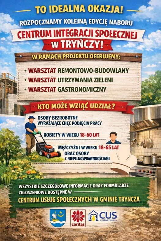 Rozpoczynamy kolejną edycję naboru do Centrum Integracji Społecznej w Gminie Tryńcza.