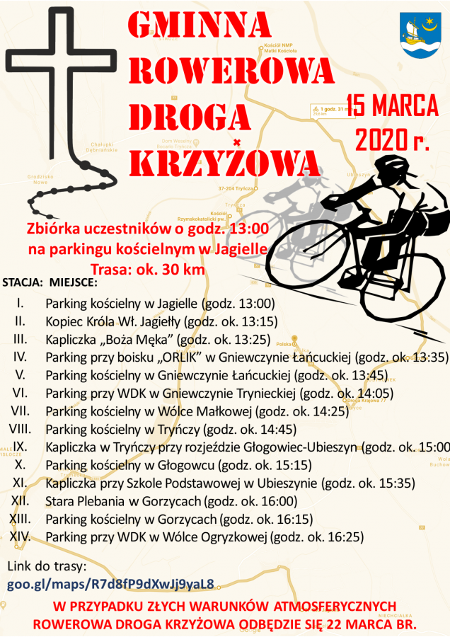 Ze względów bezpieczeństwa odwołana została Gminna Rowerowa Droga Krzyżowa, która zaplanowana była na 15 marca br.