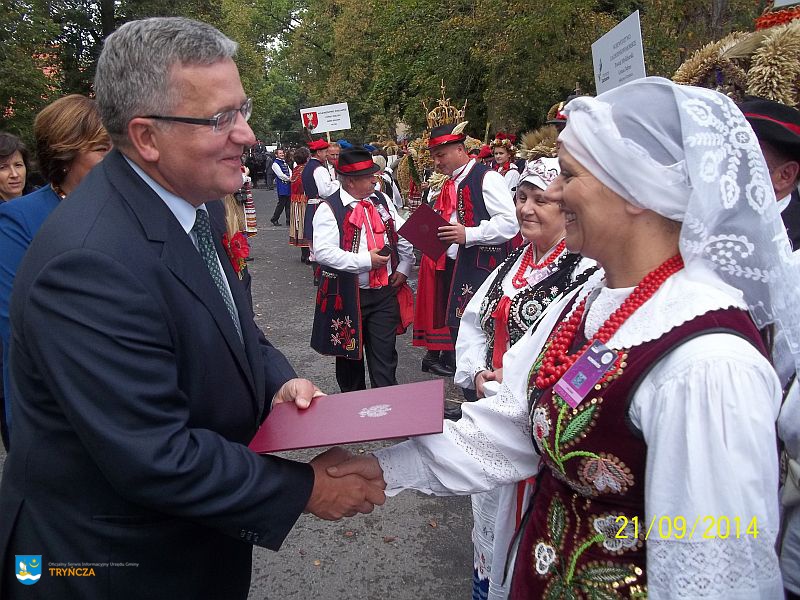 W dniach 20-21 września w Spale (woj. Łódzkie) odbyły się Dożynki Prezydenckie. Na tym dorocznym wydarzeniu przedstawiciele z gminy Tryńcza dumnie reprezentowali Województwo Podkarpackie. W sobotę przeprowadzono konkurs na najładniejszy wieniec dożynkowy. Nasze wieńczarki zdobyły wysokie V miejsce. W ogólnopolskich uroczystościach wziął udział wójt Ryszard Jędruch, Kapela Ludowa z Gniewczyny oraz zespół „Dolanie”.