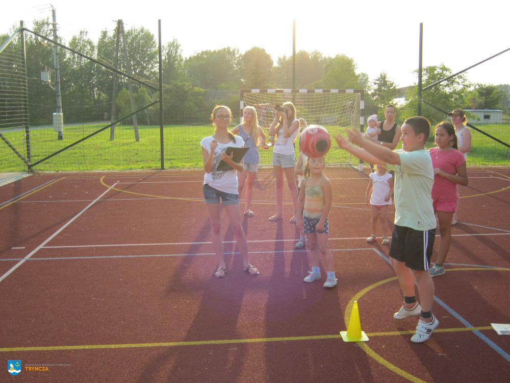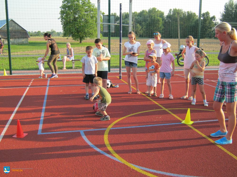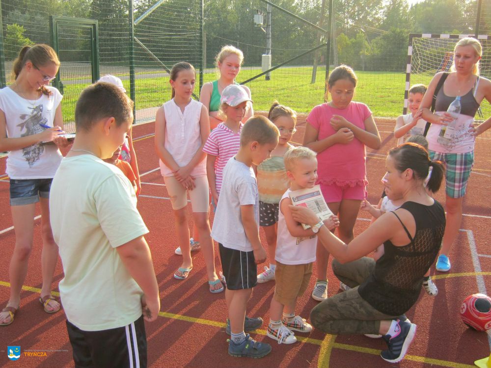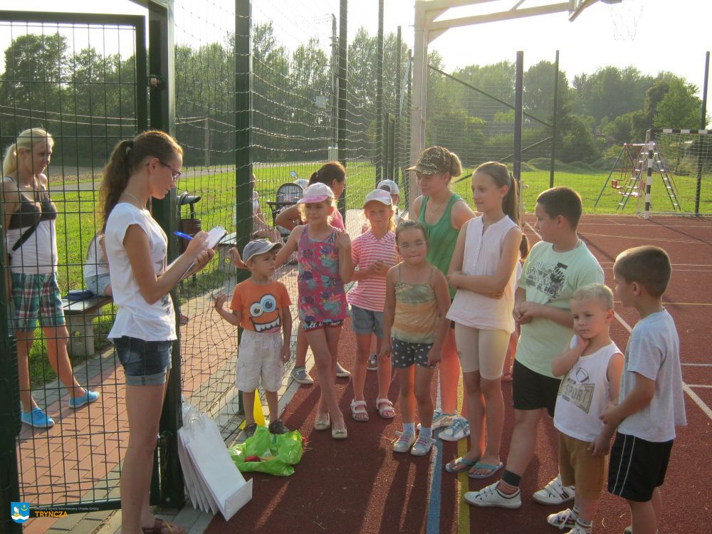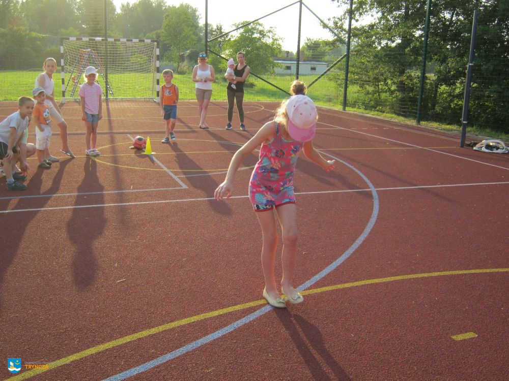 Dnia 6 sierpnia 2015 r. Gminna Biblioteka Publiczna w Tryńczy zorganizowała zawody sportowe dla dzieci. Tym razem odbyły się one na boisku tartanowym w Głogowcu. Mimo doskwierającego upału grupa dzieci aktywnie spędziła czas biorąc udział w różnego rodzaju konkurencjach takich jak: toczenie piłki slalomem, bieg z gazetą, bieg z woreczkiem na głowie, spacer tip-top, rzut do kosza i strzał na bramkę. Potyczkom towarzyszył doping zgromadzonych rodziców i rodzeństwa uczestników oraz Pani Sołtys wsi Głogowiec Marty Kornafel. Na zakończenie zawodów każdy z młodych zawodników otrzymał drobny upominek ufundowany przez Gminną Bibliotekę Publiczną w Tryńczy. Wydarzenie miało miejsce w ramach programu "Wakacje z Biblioteką 2015". Serdecznie zapraszamy do korzystania z wakacyjnych ofert Biblioteki.