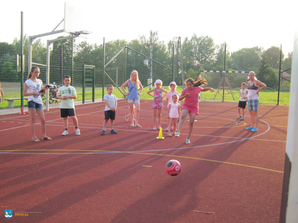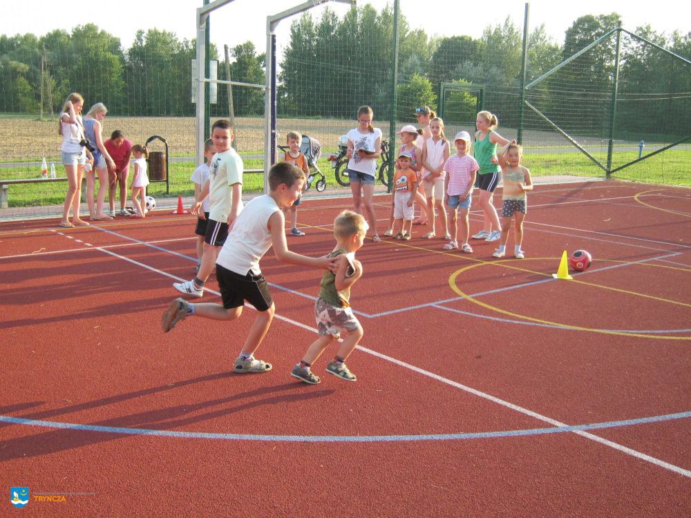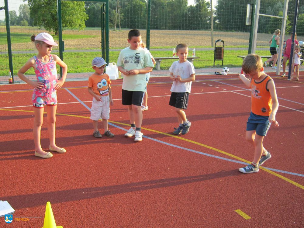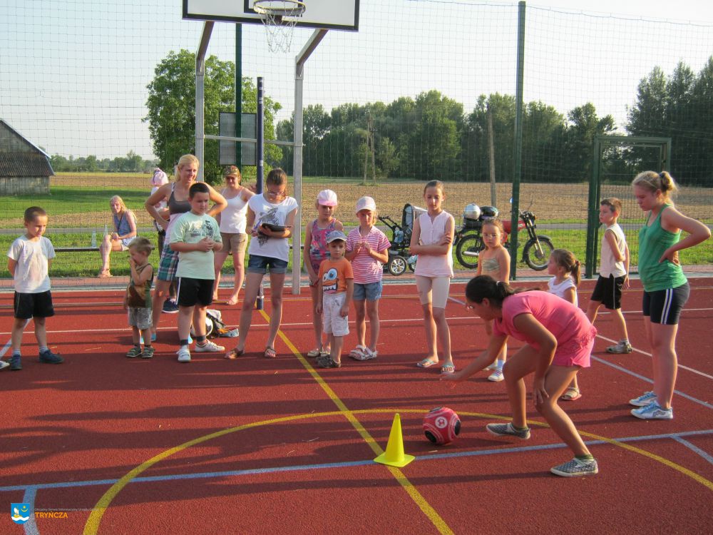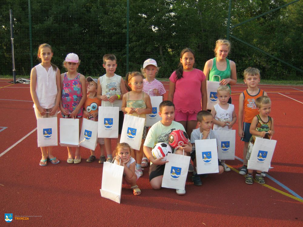 Dnia 6 sierpnia 2015 r. Gminna Biblioteka Publiczna w Tryńczy zorganizowała zawody sportowe dla dzieci. Tym razem odbyły się one na boisku tartanowym w Głogowcu. Mimo doskwierającego upału grupa dzieci aktywnie spędziła czas biorąc udział w różnego rodzaju konkurencjach takich jak: toczenie piłki slalomem, bieg z gazetą, bieg z woreczkiem na głowie, spacer tip-top, rzut do kosza i strzał na bramkę. Potyczkom towarzyszył doping zgromadzonych rodziców i rodzeństwa uczestników oraz Pani Sołtys wsi Głogowiec Marty Kornafel. Na zakończenie zawodów każdy z młodych zawodników otrzymał drobny upominek ufundowany przez Gminną Bibliotekę Publiczną w Tryńczy. Wydarzenie miało miejsce w ramach programu "Wakacje z Biblioteką 2015". Serdecznie zapraszamy do korzystania z wakacyjnych ofert Biblioteki.