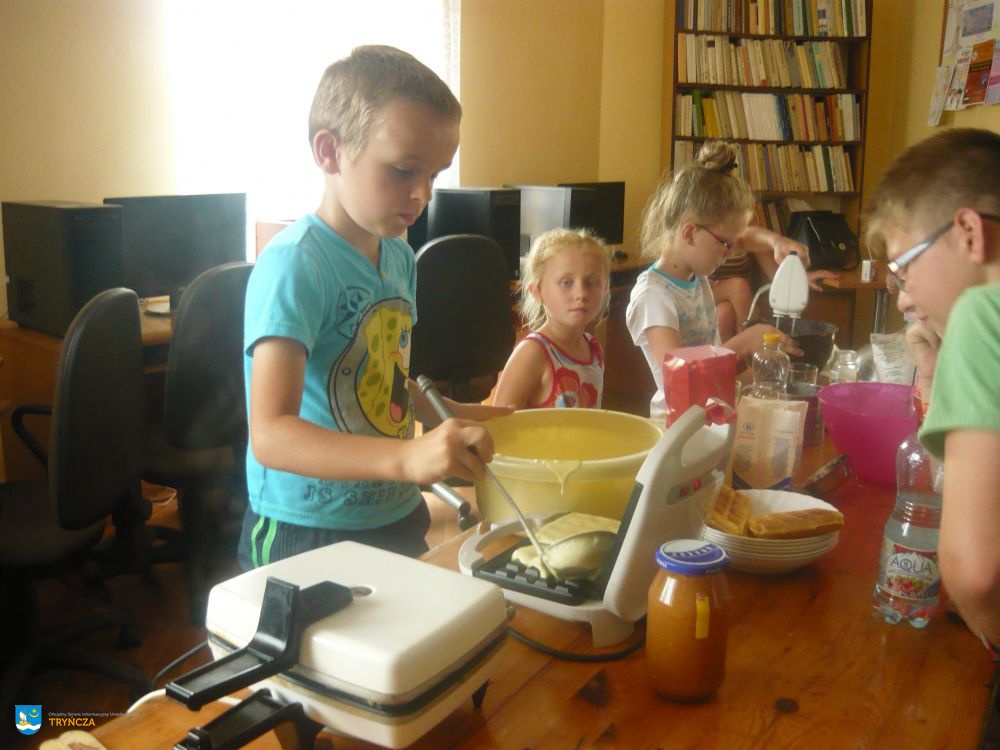 Dnia 10 sierpnia 2015 r. w ramach programu "Wakacje z Biblioteką 2015" odbyły się zajęcia kulinarne w Gorzycach. Licznie zgromadzone dzieci spędziły czas przy sporządzaniu i degustacji gofrów. Zachęcamy do korzystania z wakacyjnych ofert Gminnej Biblioteki Publicznej w Tryńczy oraz filii bibliotecznych!