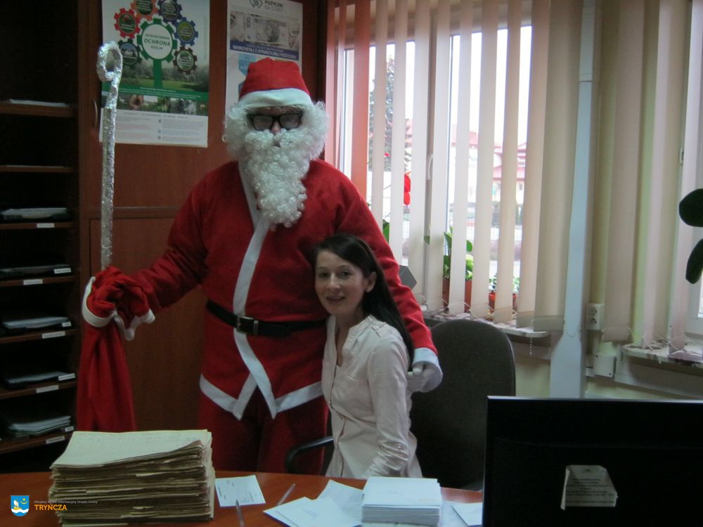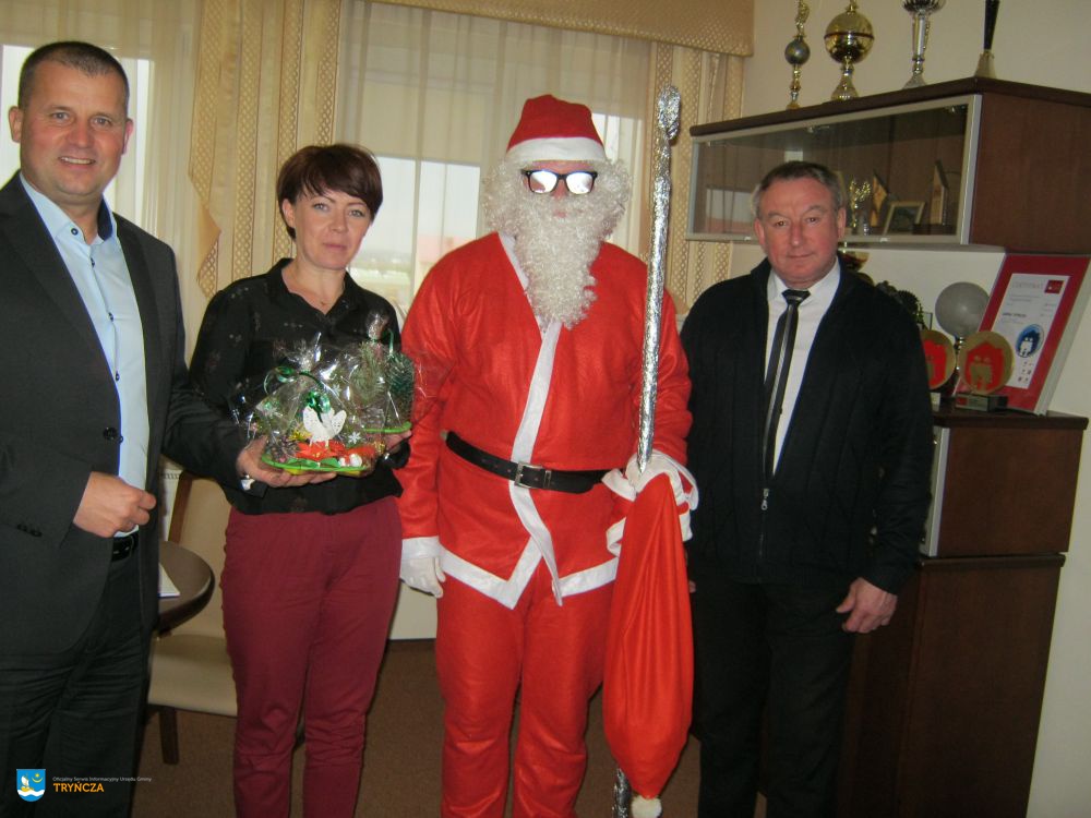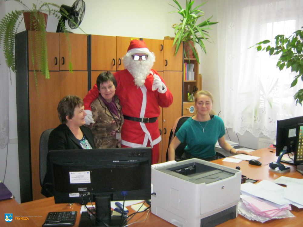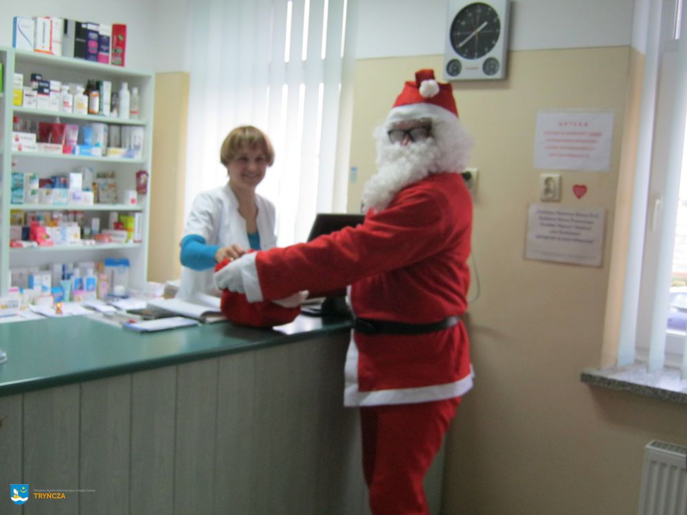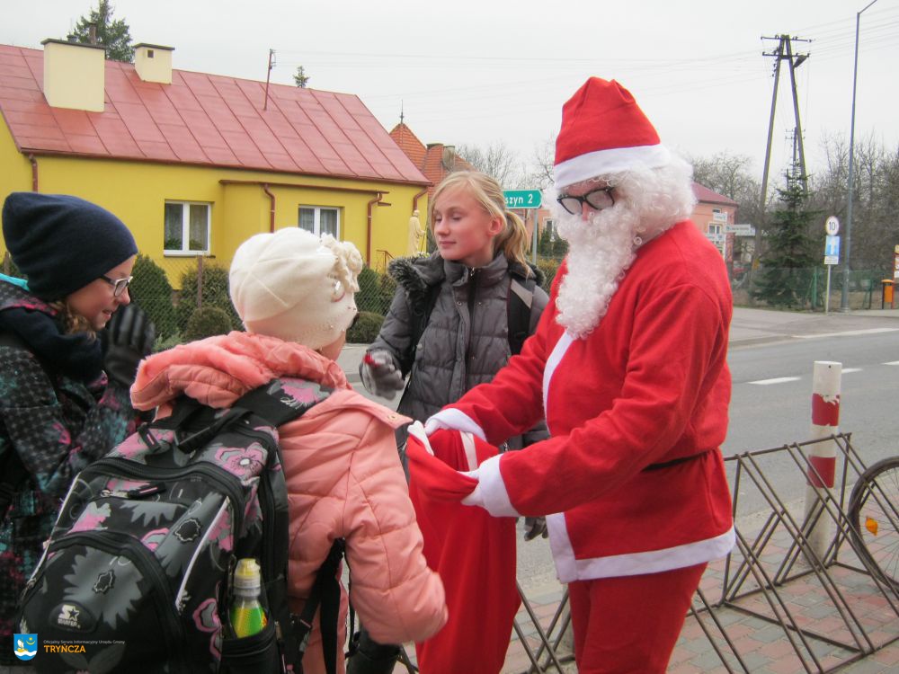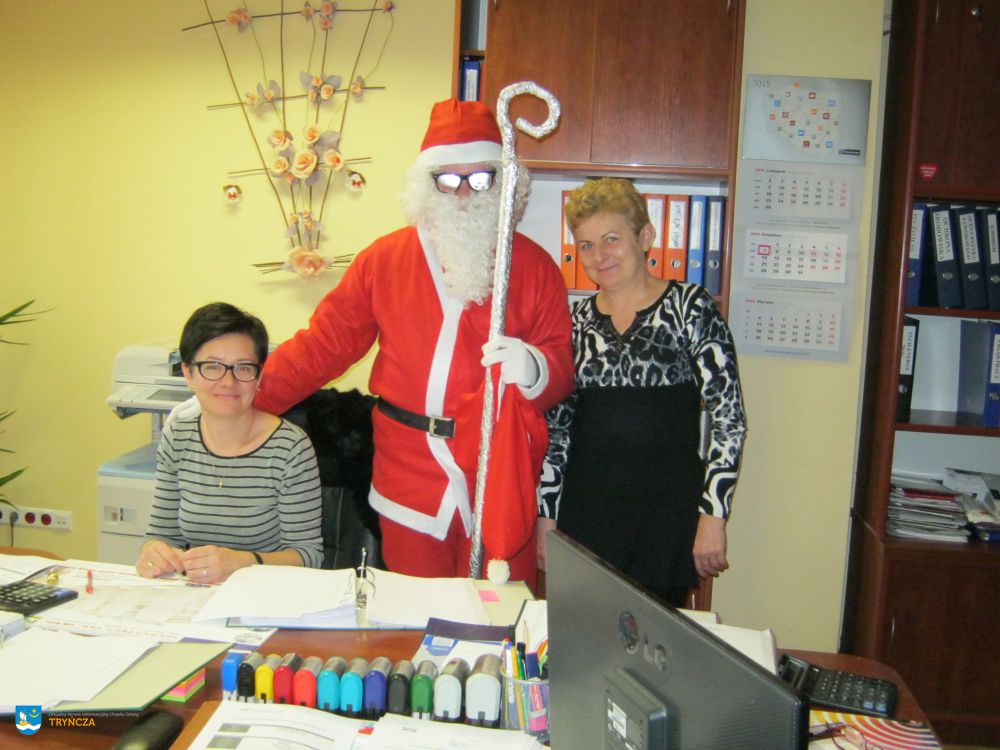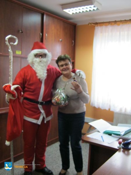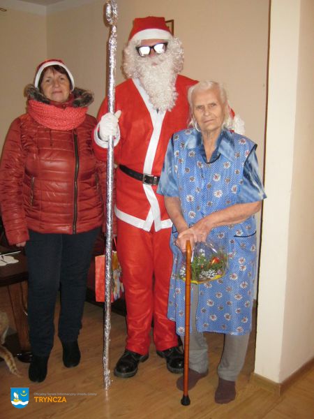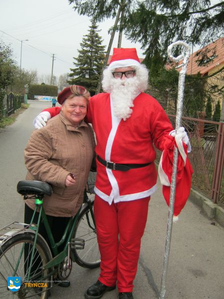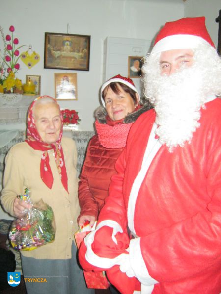 Dnia 7 grudnia jak każdego roku do Gminy Tryńcza zawitał Święty Mikołaj. W asyście pracowników Gminnej Biblioteki Publicznej w Tryńczy odwiedził Urząd Gminy, poszczególne jednostki, aptekę, ośrodek zdrowia, pocztę, siostry zakonne oraz osoby starsze i samotne. Nie ominął również przechodniów napotkanych na ulicy, których częstował słodyczami. Na zaproszenie Pani Heleny Mazur - sołtysa wsi, Mikołaj odwiedził również mieszkańców sołectwa Wólka Ogryzkowa. Wszyscy ciepło i z uśmiechem witali Świętego Mikołaja. Po rozdaniu słodkich upominków Święty życzył wszystkim zdrowych, Wesołych Świąt oraz szczęśliwego Nowego Roku.