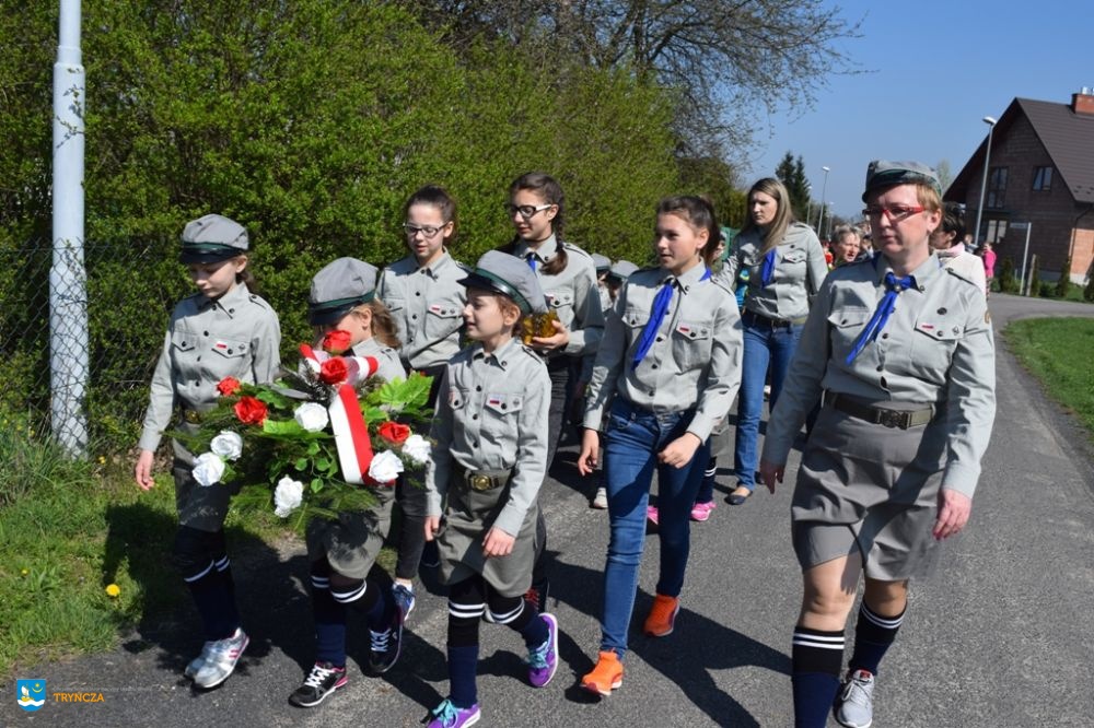W dniu dzisiejszym odbyły się uroczystości w Parku im. Lecha Kaczyńskiego w Tryńczy związane z obchodami 7. rocznicy katastrofy smoleńskiej. W tragedii polskiego, rządowego samolotu Tu-154 , do której doszło 10 kwietnia 2010 r. w Smoleńsku zginęło 96 osób na czele z prezydentem Lechem Kaczyńskim i jego małżonką. W uroczystościach przygotowanych przez pracowników Gminnej Biblioteki Publicznej w Tryńczy udział wzięli, przedstawiciele Urzędu Gminy - Koordynator ds. Oświaty - Magdalena Kubis, Dyrektor Trynieckiego Centrum Kultury - Henryk Chruściel, Dyrektor Zespołu Szkół w Tryńczy - Elżbieta Kubrak, nauczyciele, zuchy, harcerze oraz uczniowie. Obchody tego wydarzenia rozpoczęły się odśpiewaniem Mazurka Dąbrowskiego przez wszystkich uczestników. Następnie pod Krzyżem Katyńskim poszczególne delegacje złożyły wiązanki kwiatów i zapalony został „Znicz Pamięci”. Na zakończenie za wszystkich zamordowanych w Katyniu oraz wszystkie ofiary katastrofy lotniczej została odmówiona krótka modlitwa. Oprawę muzyczną uroczystych obchodów 7. rocznicy katastrofy smoleńskiej zapewnili: Maksymilian Myłek oraz Jakub Duda - członkowie Młodzieżowej Orkiestry Dętej z Tryńczy.